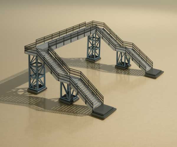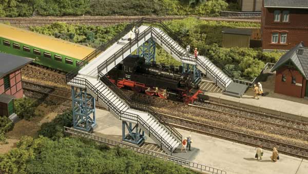 Übergang mit zwei Treppenaufgängen für zweigleisige Strecken, der in mehreren Varianten eingebaut werden kann.
