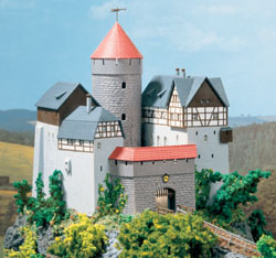 Die Burg wurde in der 2. Hälfte des 12. Jahrhunderts im Zuge der Besiedlung des Gebirges über dem Tal der Pockau errichtet und nach wechselvoller Geschichte im 30jährigen Krieg zerstört. Das Modell entstand nach den Burgresten an der Landstraße zwischen Pockau-Marienberg, dem vorhandenen Grundriss sowie nach einer