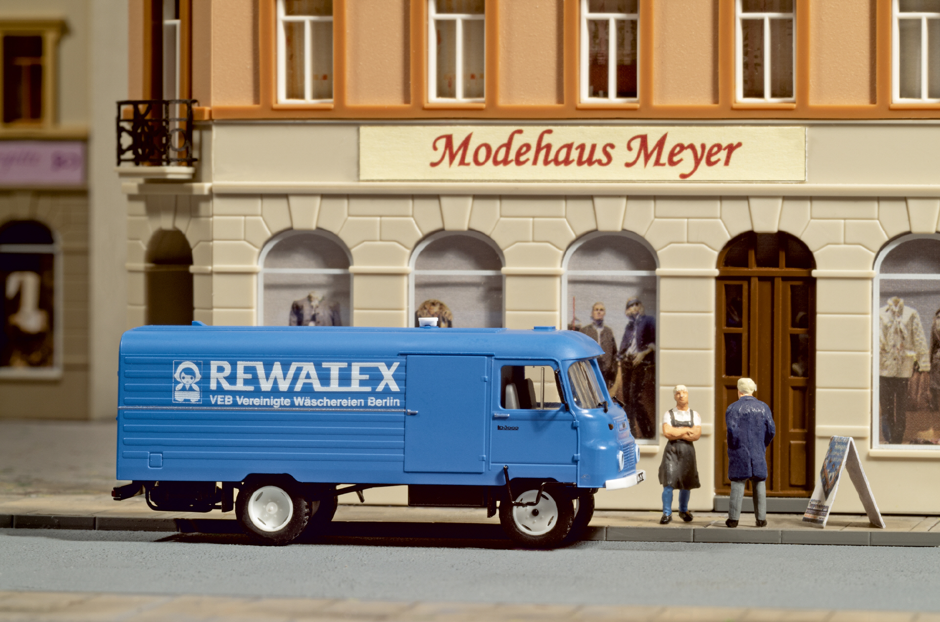 Bausatz. Der seit 1978 in überarbeiteter Form produzierte ROBUR Kastenwagen unterscheidet sich durch die nun gesickten Seitenwände und dem heckseitigen Unterfahrschutz von seinem Vorgänger. Anfänglich nur mit Ottomotor lieferbar, war ab 1982 auch wieder ein Dieselmotor im ROBUR Fertigungsprogramm und wurde dann überwiegend in den Fahrzeugen verbaut. Die in den Zittauer VEB Robur Werken gefertigten Fahrgestelle wurden per Bahn zur Endmontage nach Halle gesendet. Der dortige VEB Karosseriewerk Halle fertigte den Kastenaufbau und übernahm die finale Endmontage dieser u.a. als Lieferfahrzeug im Einzelhandel, in der Lebensmittelindustrie und auch im Dienstleistungsgewerbe - um nur ein paar Beispiele aufzuzählen - eingesetzten Variante des ROBUR Frontlenker LKW.