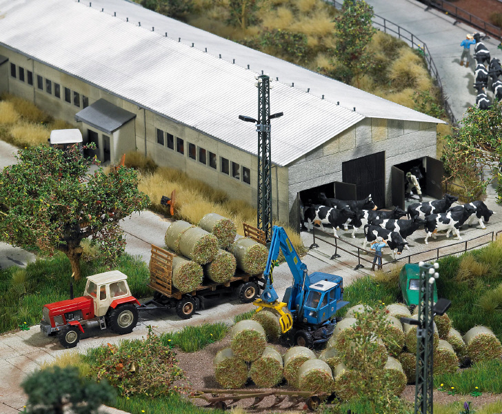 Modell eines LPG-Gebäudes, wie sie seit den sechziger Jahren in der ehemaligen DDR entstanden sind. Das Original diente als Färsenaufzucht (»Färse« ist ein weibliches Hausrind, das noch nicht gekalbt hat). Das Gebäudemodell aus Spezialkarton wird in der neusten »Laser-Cut«-Technologie gefertigt und ist farblich nachbehandelt, um die Betonstruktur des Vorbildes authentisch darzustellen. Die zahlreichen Zurüstteile, wie Regenrinnen, Fallrohre, Fensterrahmen, Scheiben und Belüftungsrohre auf dem Dach, bestehen aus filigranen Kunststoffspritzgussteilen. Das Gebäude verfügt an den Stirnseiten über je drei Tore, die man auch in geöffnetem Zustand präsentieren kann. Mit mehreren Bausätzen können größere Anlagen gebaut werden. Das Gebäudemodell ist auch ideal geeignet, um »zweckentfremdet« zu werden, denn viele der ehemaligen LPGs dienen inzwischen neuen Verwendungszwecken. Sie beherbergen heute Baumärkte, Garten-Center, Kfz-Werkstätten und kleinindustrielle Hersteller. Entsprechender Ausschneidebogen liegt bei. Bausatz.
