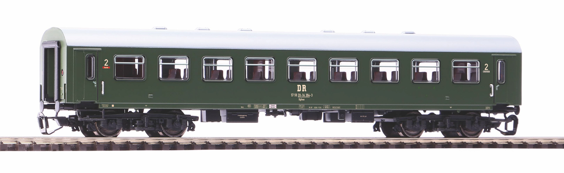 Passend zu den Modellen der Baureihe 118 und 119 der DR liefert PIKO die Reko-Wagen der DR in der Farbgebung und Bedruckung der Epoche IV mit den zu dieser Zeit einheitlich verwendeten Drehgestellen der Bauart Görlitz V. Die Wagen überzeugen durch feinste Lackierung und Bedruckung, hervorragende Rolleigenschaften, unterschiedliche Inneneinrichtung und die Fensteraufteilung sowie detaillierte Drehgestelle. Die Wagen sind für eine einfache Nachrüstung mit der LED-Innenbeleuchtung # 46050 vorbereitet.