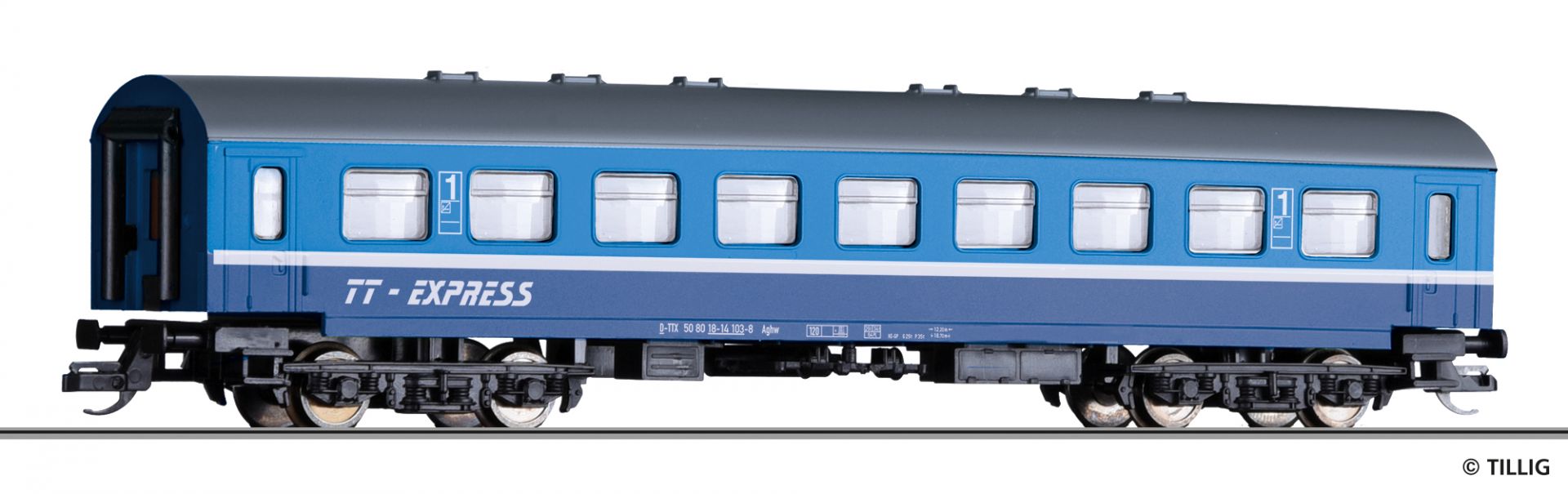Reisezugwagen TT-Express 1. Klasse START Hauseigene Kupplungsaufnahme Nenngröße TT, Maßstab 1:120, Spurweite 12mmNicht für Kinder unter 14 Jahren geeignet. Länge über Puffer 160 mm Angaben zur ProduktsicherheitTillig Modellbahnen GmbHPromenade 101855 Sebnitzinfo@tillig.comTelefon:035971 57443 Aktion war erfolgreich Das hat leider nicht geklappt. Warenkorb anzeigen Zur Kasse gehen Weiter einkaufen Produkt-ID: 11-13190 Der Artikel ist nicht am Lager,ab Werk möglich. 24,49 € incl. 19% USt. zzgl. VersandNicht geeignet für Kinder unter 14 Jahren. Enthält Kleinteile. Anzahl: Stück In den Warenkorb Auf den Merkzettel