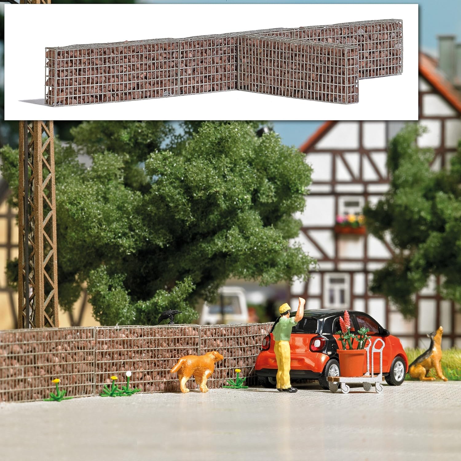 Gabionen Passend für folgende Maßstäbe: Spur N Bausatz für vier Filigran Gabionen aus Metall, gefüllt mit Natursteinen. Maße je 40 mm x 5 mm, 15 mm hoch. Aktion war erfolgreich Das hat leider nicht geklappt. Warenkorb anzeigen Zur Kasse gehen Weiter einkaufen Produkt-ID: 26-7870 Lieferbar in 2-10 Werktagen. 11,99 € Unser alter Preis 14,99 €, Sie sparen 3,00 €! incl. 19% USt. zzgl. VersandNicht geeignet für Kinder unter 14 Jahren. Enthält Kleinteile. Anzahl: Stück In den Warenkorb Auf den Merkzettel