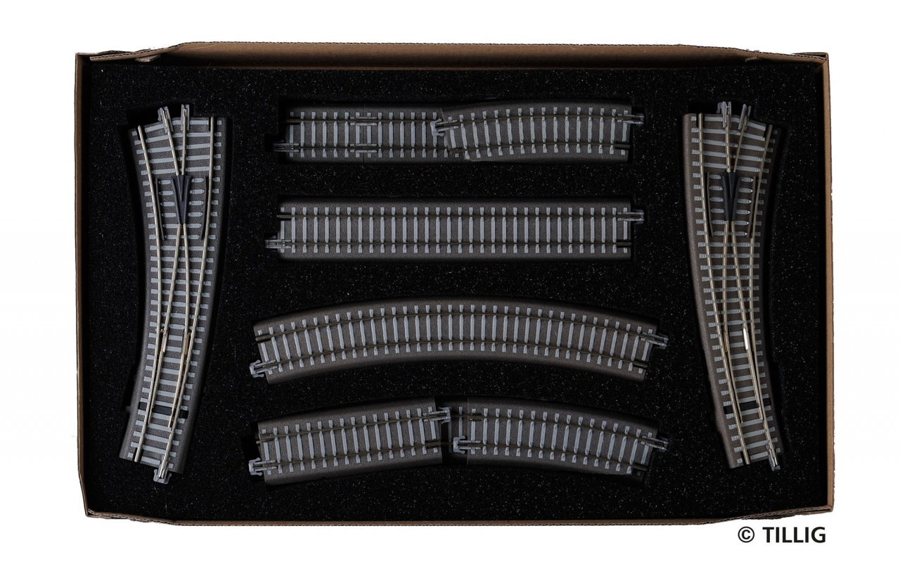 - eine Innenbogtenweiche links (83862) mit Ausgleichsstück (83725)