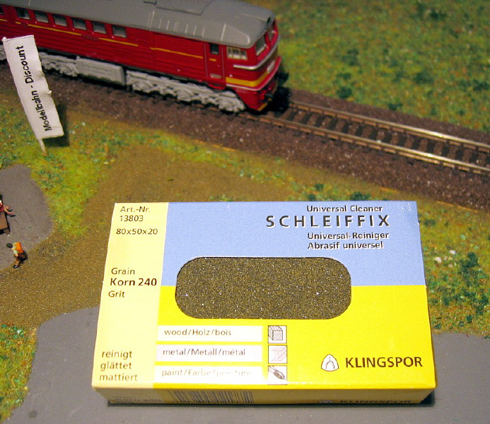 Gleis-Reinigungsstein Universal Schleiffix (8 x 5 x 2 cm). Angaben zur ProduktsicherheitTillig Modellbahnen GmbHPromenade 101855 Sebnitzinfo@tillig.comTelefon:035971 57443 Aktion war erfolgreich Das hat leider nicht geklappt. Warenkorb anzeigen Zur Kasse gehen Weiter einkaufen Produkt-ID: 11-08974 Lieferbar in 2-10 Werktagen. 11,19 € incl. 19% USt. zzgl. VersandNicht geeignet für Kinder unter 14 Jahren. Enthält Kleinteile. Anzahl: Stück In den Warenkorb Auf den Merkzettel