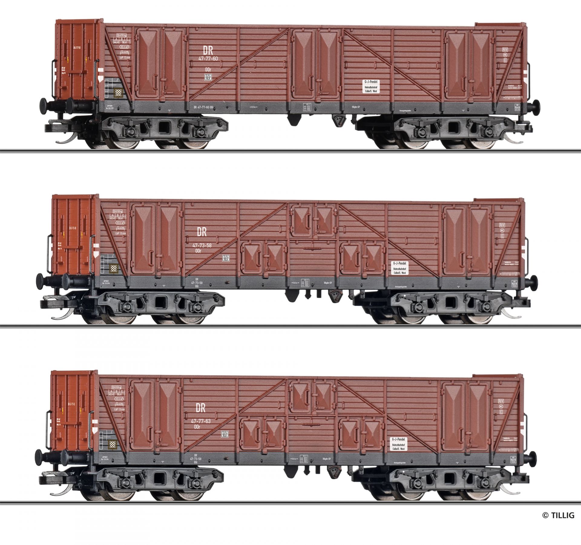 Güterwagenset "Grundstoff-Industrie-Pendel" der DR, bestehend aus drei off. Güterwagen OOr, Teil 2