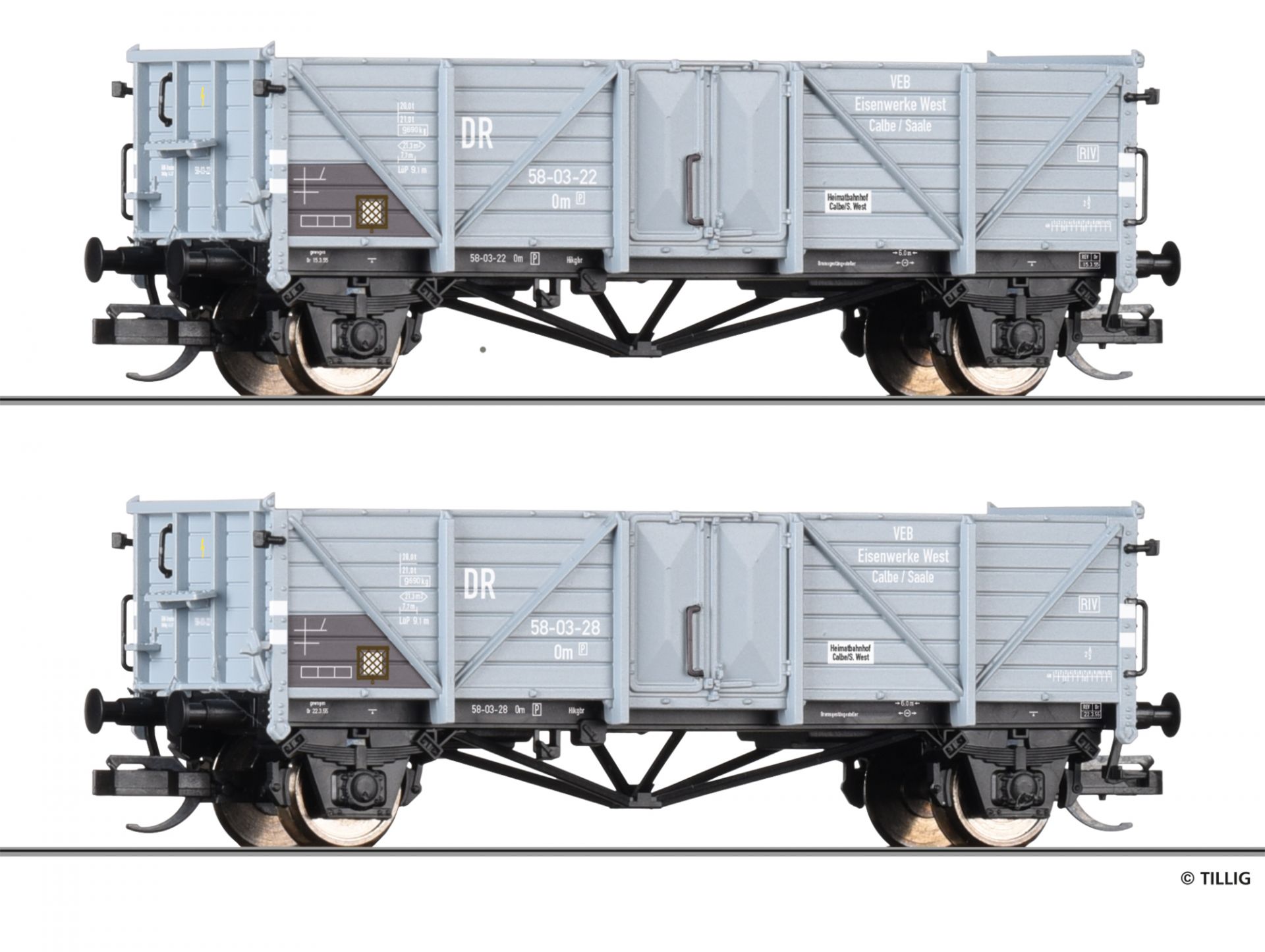 Güterwagenset "VEB Eisenwerke West" der DR, bestehend aus zwei Güterwagen Om