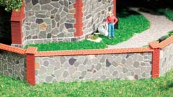 Die Natursteinmauerteile liegen dem Bausatz einfarbig grau bei und wirken realistischer, wenn sie zusätzlich mit matten Farben behandelt werden.