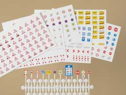 Dieser Bausatz enthält über 780 verschiedene Verkehrszeichen, Wegweiser, Ortsein- und -ausfahrtschilder und Plakate sowie 70 Säulen und Sockel.