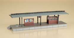 Aus der Zeit der Jahrhundertwende, in Gusseisenmanier, mit Ausgang zum Fußgängertunnel, Bänken, Werbeplakaten und Blumenschalen. Originalmodell. 236 x 55 x 60 mm Gleismittenabstand 88 mm