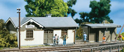 Holzverschaltes Gebäude für Nebenbahnen mit separatem Abort. Die nostalgischen sogenannten Schamwände lassen