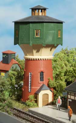 Zur Versorgung der Dampflokomotiven mit Wasser. Das Reizvolle am Modell ist die feindetaillierte Struktur der Ziegel und Holzteile. Das Vorbild steht in Aschersleben.