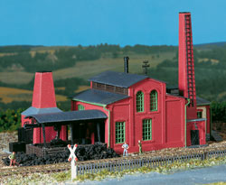Nachbildung des ehemaligen Gaswerkes in Zöblitz/Erzgebirge. Kohlebunker mit Laufkatze und Kokslöschturm. Tore beweglich. Originalmodell 225 x 103 x 140 mm
