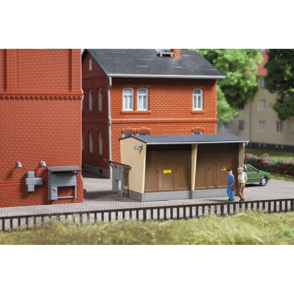 Unser Vorbild steht in Pockau/Erzgebirge. Hier zu Lande findet man solche oder ähnliche Trafohäuschen überall. Ob im Werksgelände oder in einem Wohngebiet - dieses kleine Gebäude mit Stahltüren, Elektroverteilern, Überdachung und Lampen sorgt für das gewisse Etwas bei der Gestaltung einer Modellbauszene. Schilder wie „Vorsicht Hochspannung“ liegen bei.