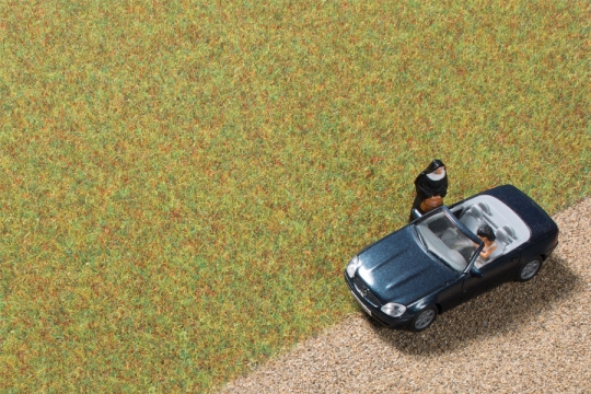 Neben der individuellen Geländegestaltung kaschiert man mit Grasfasern auch die Übergänge bei unseren Geländematten.