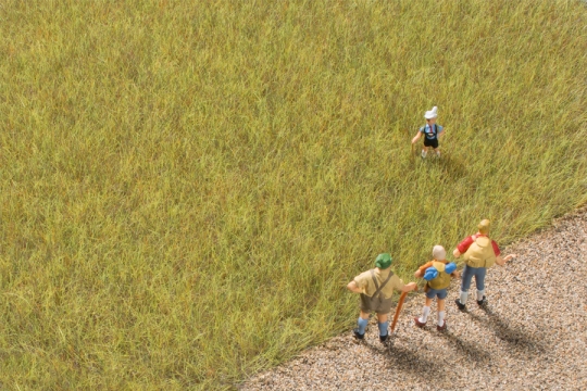 Neben der individuellen Geländegestaltung kaschiert man mit Grasfasern auch die Übergänge bei unseren Geländematten.