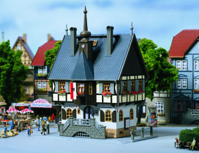 Schon fast märchenhaft wirkt dieses Fachwerkgebäude. Ursprünglich wurde es mitten auf dem Marktplatz als Rathaus und Sparkasse erbaut. Heute braucht die Stadtverwaltung mehr Platz. Deshalb sind jetzt die Touristeninformation und ein Ladengeschäft darin untergebracht.