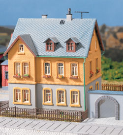 Erbaut um 1910. Typisches Wohngebäude, das einzeln oder in Reihe nahe der Fabriken gebaut wurde - teilweise im Erdgeschoss Büro. Die Rückseite wird durch den angebauten Treppenaufgang und die Hoftür interessant. Der gemauerte Durchgang zum Anschluss an weitere Gebäude liegt bei.