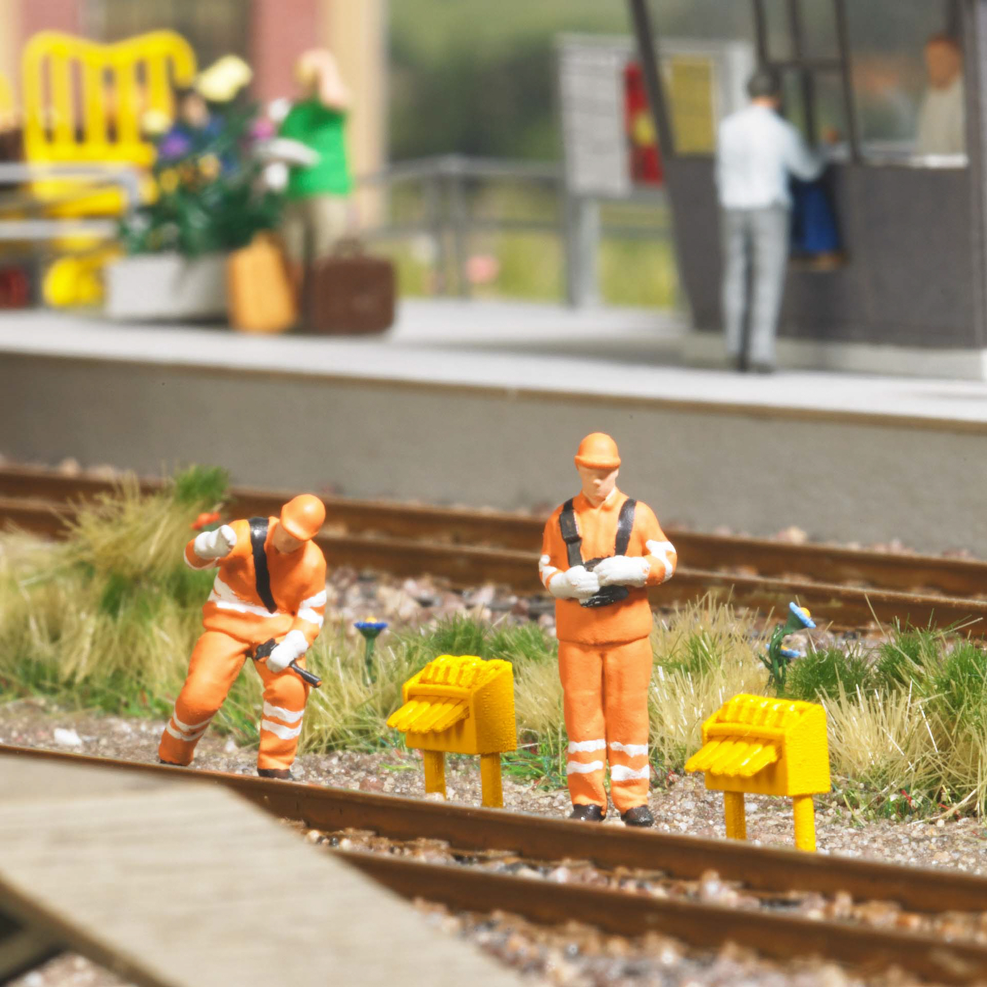 Für die realistische Belebung Ihrer Modellwelt. Mit thematischem Zubehör und mindestens einer Figur (bemaltes Fertigmodell) in passender Position.