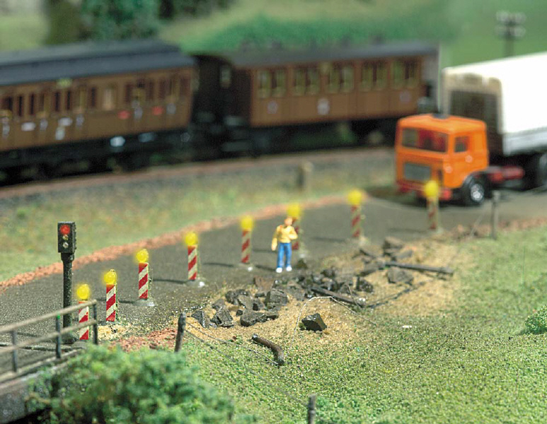 Neue Warnbaken für H0, TT und N. Absolut maßstäblich in der Größe und vorbildgetreu in der Farbgebung. 7 Warnbaken (davon 4 mit Blitz) und Blinkschaltung.