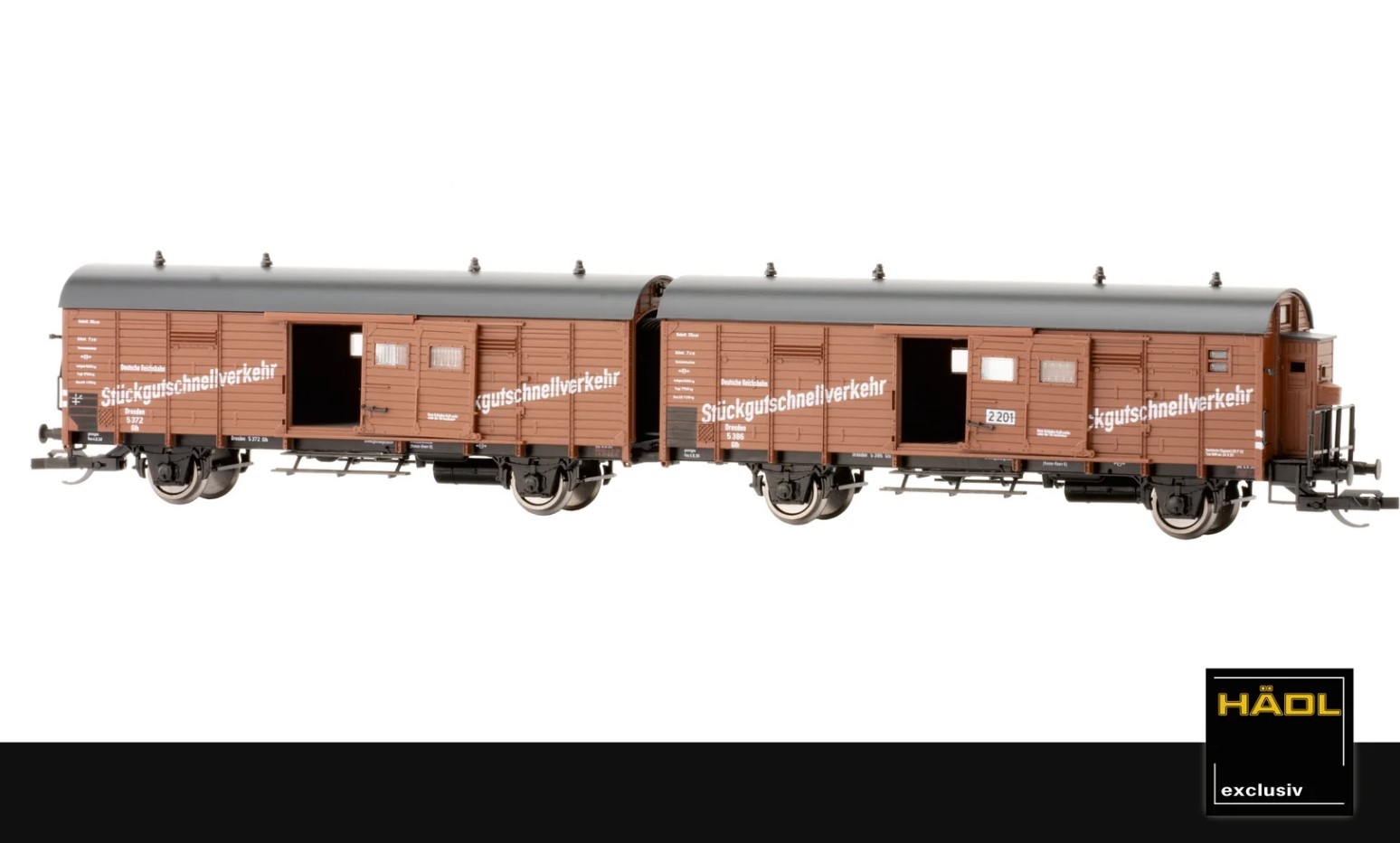 Die Leig-Einheit auf Basis des Dresden kommt nun auch in Epoche II. Sie unterscheidet sich von den anderen, schon realsisierten, Varianten durch ihre mit Fenstern ausgestatteten beweglichen Schiebetüren, die Dachlüfter und die neue, große Bedruckung. Weiterhin ist sie mit beweglichen Türgriffen, Bremserhaus und Bremserbühne ausgestattet und erhält sogar am Fahrgestell eine mehrfarbige Bedruckung.