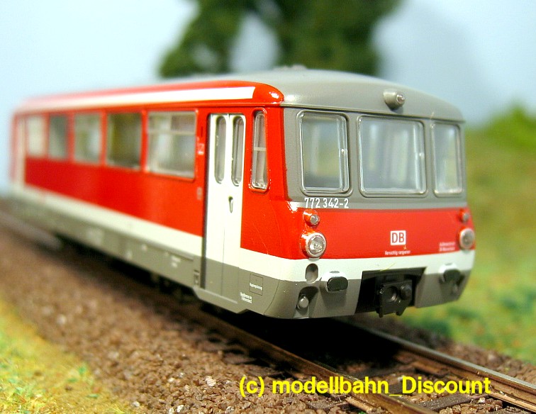 Der Leichttriebwagen 772.342-2, im Maßstab 1:120, nach dem Vorbild der Epoche V der DB-Regio AG Leipzig.