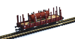 auf Transportgestell gelagert und mit Spannbändern gesichert, passend für alle gängigen 2-achsigen Flach-, Niederbord- und Rungenwagen; Länge: ca. 100 mm