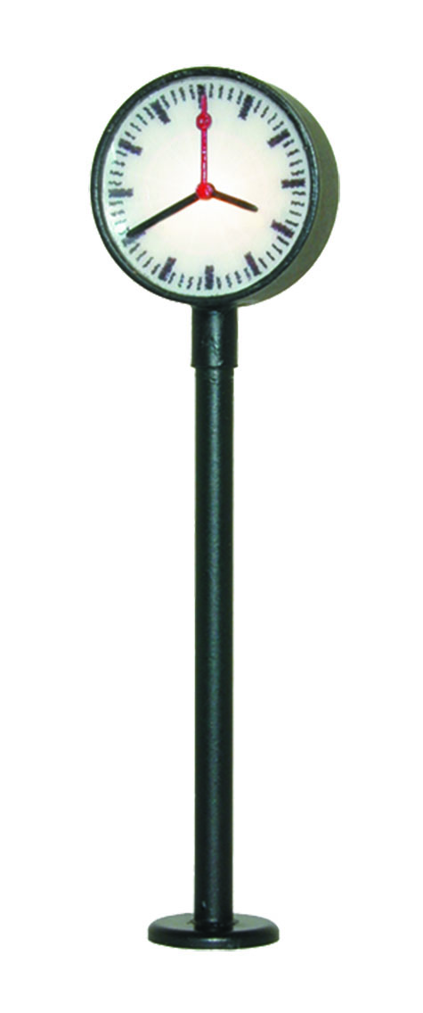 Zeitanzeige ohne Funktion. Vorbildgetreuer Messingmast mit Patentsteckfuß für eine besonders einfache Montage. Wartungsfrei dank LED-Beleuchtung. Höhe: 34 mm. TIPP: Das Powermodul Art. 5215 sorgt für flackerfreies Licht beim Betrieb mit Wechselstrom und erzeugt nahezu doppelte Helligkeit.