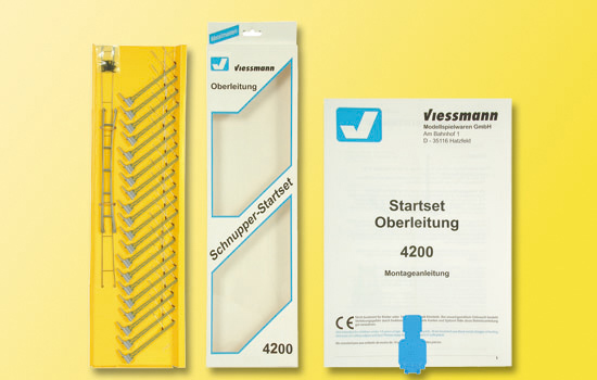 für ein Gleisoval mit einer Weiche, bestehend aus 20 Streckenmasten 31-4210, 1 Streckenmast zum Fahrdraht- abspannen, 17 Fahrdrähten 122 mm, 2 Fahrdrähten 200 mm und 2 Fahrdrähten 332 mm Fahrdrahtmontagelehre 31-4296