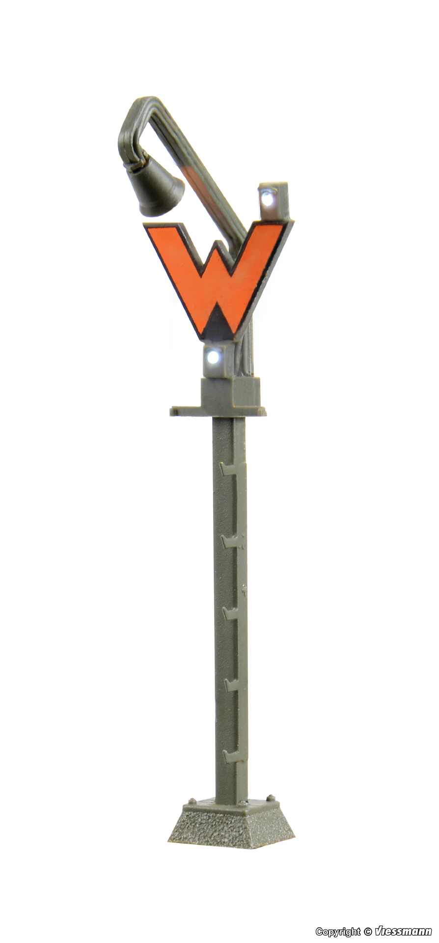 Mit filigranem Messingmast in originalgetreuer Lackierung und Patentsteckfuß für einfache Montage. Mit 3 LEDs, wartungsfrei. Signalbild Ra11. Höhe: 47 mm.