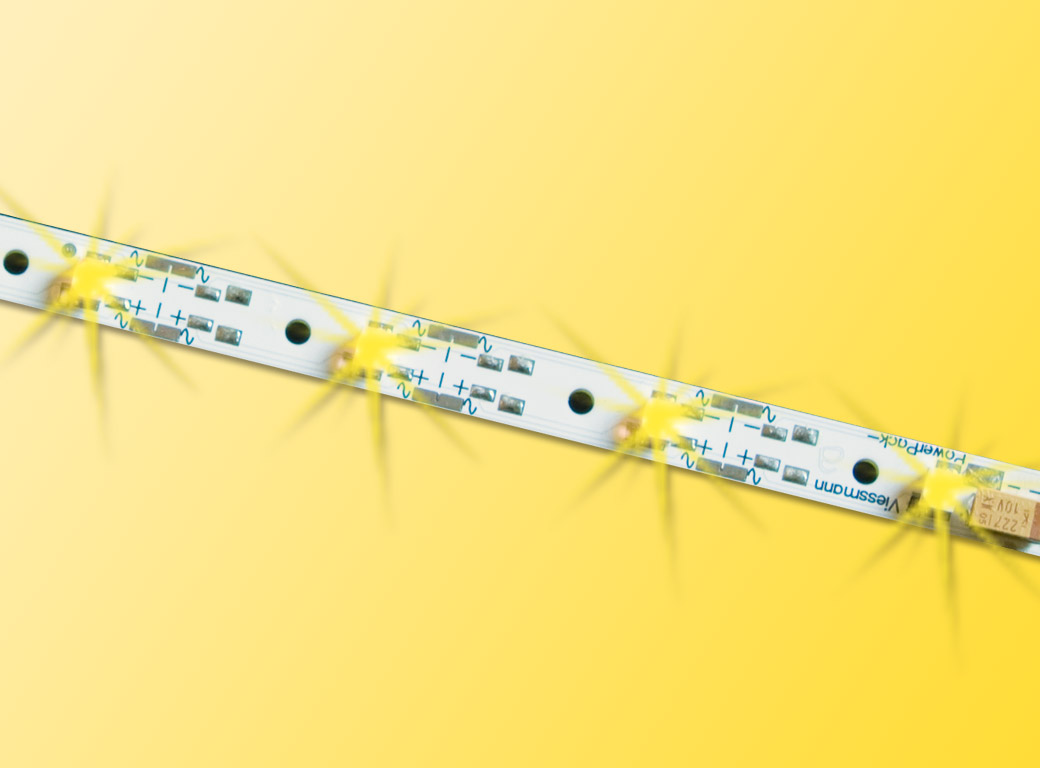 Mehrfach teilbare Innenbeleuchtung mit wartungsfreien, stromsparenden LEDs und hellem Licht. Helligkeit durch Potentiometer einstellbar. Zusätzlich zwei rote LEDs für Zugschlussbeleuchtung enthalten. Geeignet für Waggons aller Hersteller, die für Beleuchtung vorgesehen sind. Befestigung der Platinen unter dem Waggondach. Durch Kürzen können die Platinen auf jede Waggonlänge angepasst werden. Flackerschutz und Konstantstromquelle für gleichbleibend helles Licht integriert. Die Stromversorgung erfolgt durch am Waggon vorhandene Schleifer / Kontaktsätze oder durch stromführenden Kupplungen. Für Gleich-, Wechsel- und Digitalstrom geeignet. Stromaufnahme ca. 22 mA, ca. 7 mm x 211 mm.