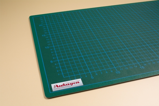 Der Rasteraufdruck im Zentimeterabstand ist rechtwinklig und erleichtert das Anlegen von Bauteilen oder das Ablängen immer wiederkehrender Maße. Die Abmessung der Matte ist groß genug um bequem arbeiten zu können.