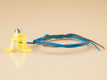 Mit Fassung E 5,5 und 50 cm Anschlussdrähten, ohne Lampe. Die Füße gewährleisten sehr gute Standfestigkeit. Glühlampen entsprechend der gewünschten Voltzahl sind separat erhältlich.